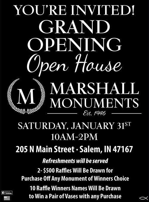 We're an owner-operated monument studio that is proud to serve the greater Salem, Indiana area and all of Kentuckiana. Our owner, Corey Churchman, has built a team and reputation with an outstanding commitment to our clients. Selecting a fitting memorial is probably one of the most important decisions you will have to make. You will do well choosing Marshall Monuments due to our well-known years of experience and sympathetic understanding.